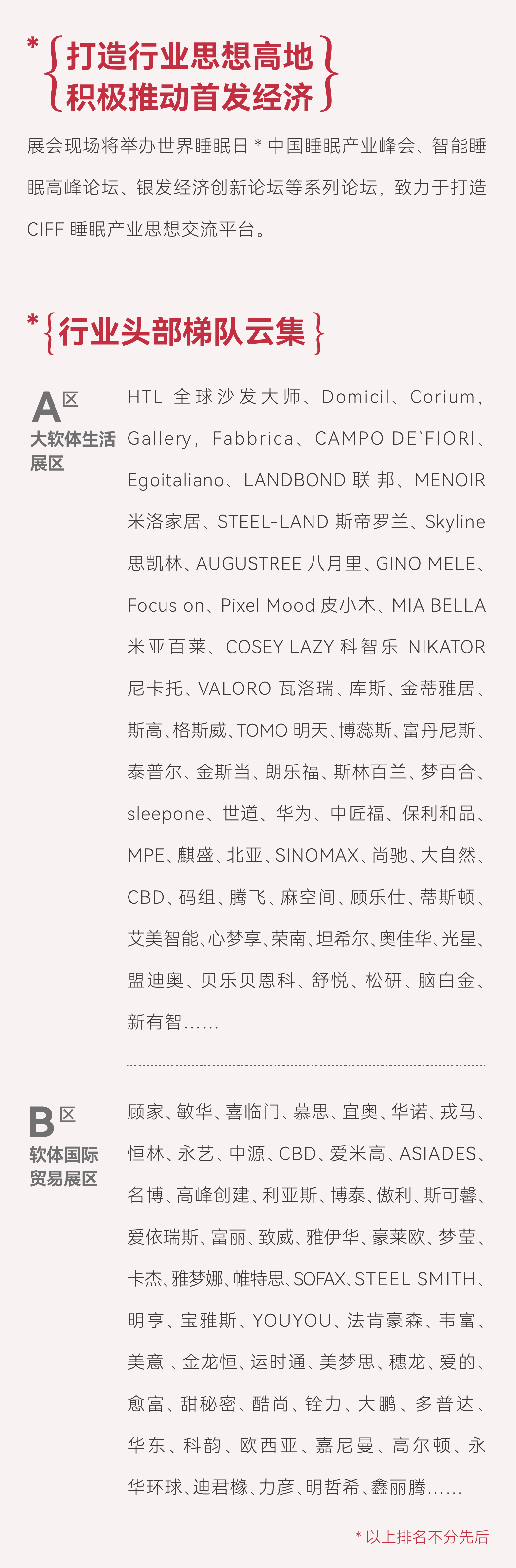 第一期展会——民用家具展将于2025年3月18日—21日举办。本届民用家具展以“向新”为主题,“向新”是是每个家居人不断出发的动力也是家居行业永远朝圣的远方。3月18-21日举办的民用家具展,将携手国内外数千个优质家居品牌,以设计和空间为载体,呈现六大先锋向新点。