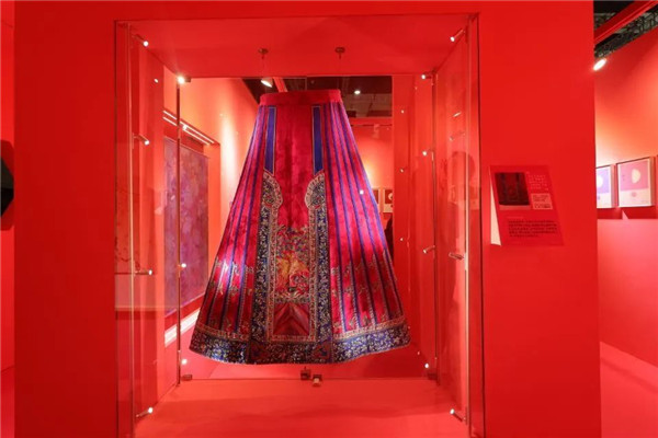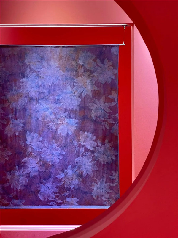 在艺术展上,植物染技艺非遗传承人黄荣华的植物染作品惊艳亮相,以独特而丰富的色彩层次彰显了传统工艺的非凡魅力。马面裙制作技艺非遗传承人林栖复刻的清咸丰魏红色龙凤百褶裙,也成为艺术展上的一大特色,展品以盘金绣、平绣等绣法,重现了龙凤江崖海水图的皇家气韵。