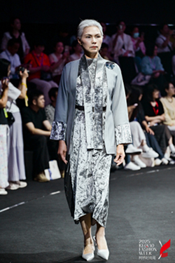 作为“现代汉民族民族服”的核心载体,本次大秀系统呈现四大着装标准,完成从礼仪服饰到生活方式的文化转译。秀场内,灯光聚焦在T台中央,如梦如幻。随着音乐响起,模特们身着商务正装系列缓缓登场。碳灰、中灰、珍珠灰等专业灰色系服饰,在模特们自信的步履间,传递出专业稳重的气质。立领、对襟等传统细节与优化后的肩部剪裁、修身版型相得益彰,经典与现代审美完美融合,赢得现场阵阵赞叹。