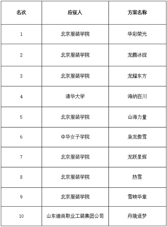 领奖服获奖方案名单