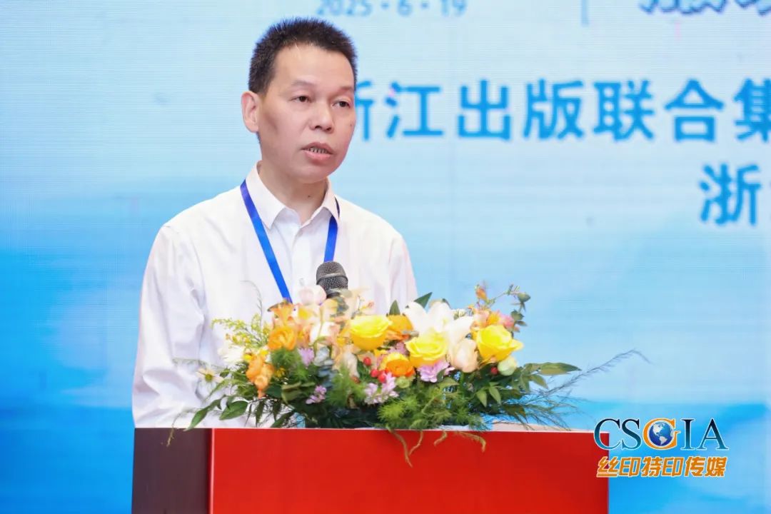 浙江出版联合集团有限公司党委委员、副总经理,浙江省印刷协会会长董立国围绕服装服饰印花科技创新大会的选址意义、主题内容和未来展望展开讲话。他表示服装服饰印花行业是科技与美学的交叉领域,是一个充满无限可能的行业,承载着人们对“美”的向往、“潮”的追求和“靓”的表达。未来,协会将注重引导“设计+科技+文化”的融合创新,助力服装服饰印花行业高质量发展,推动浙江从“印刷大省”向“印刷强省”的跨越。