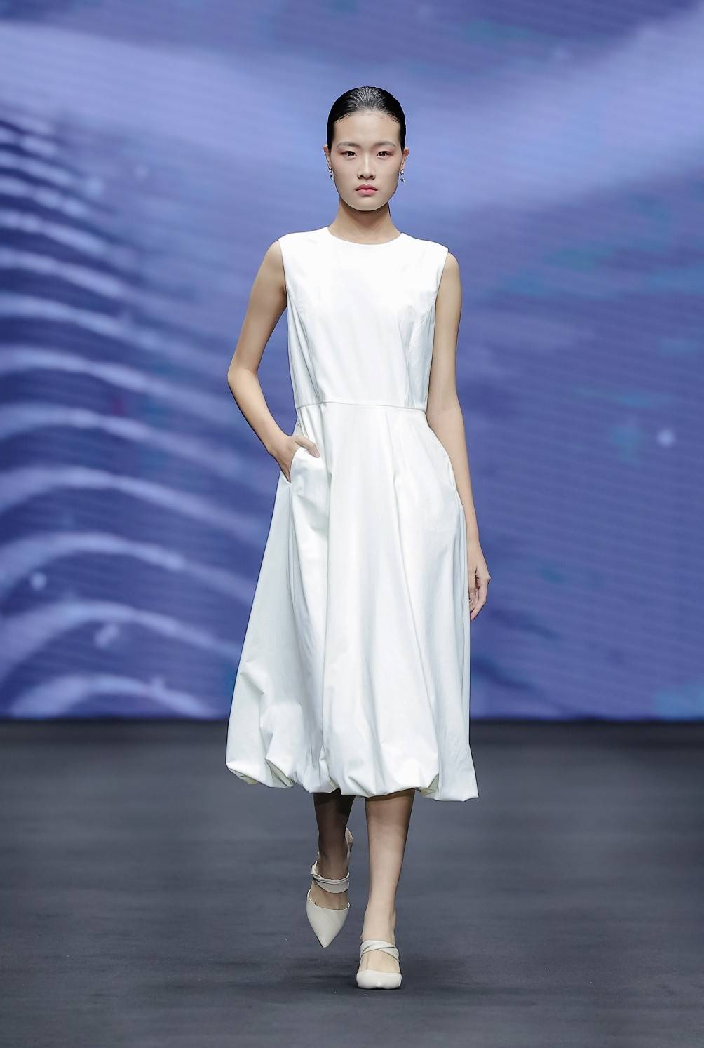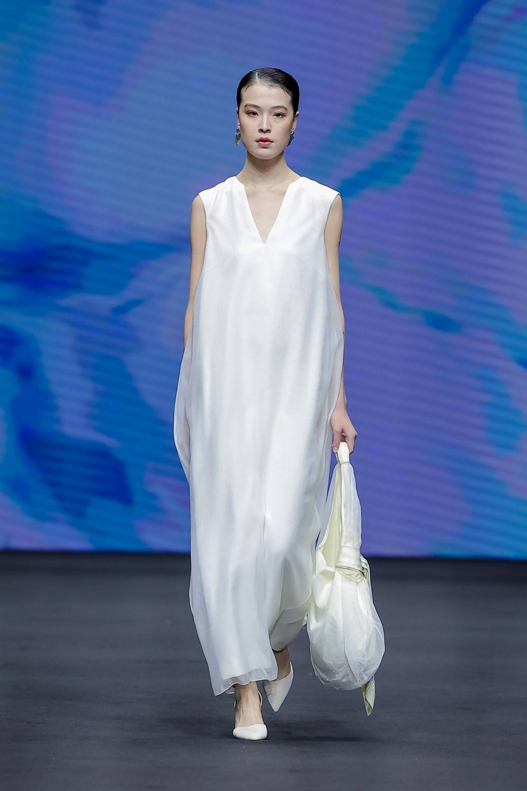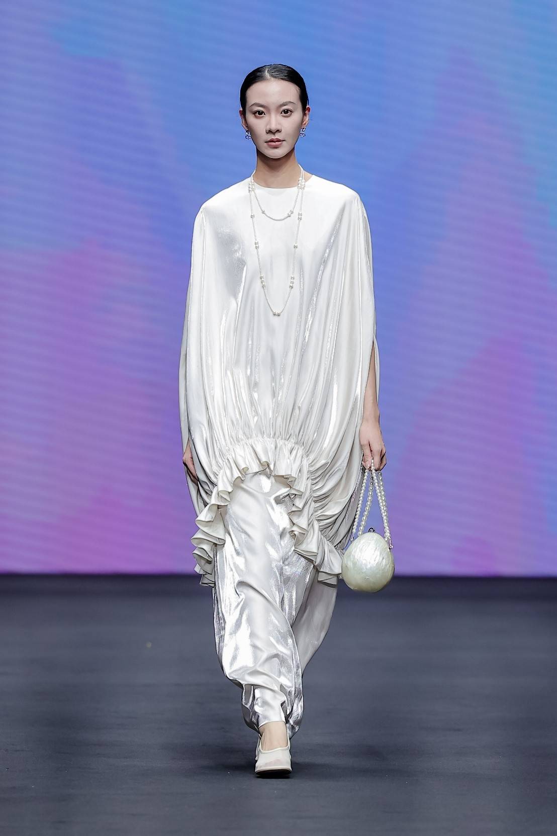 须臾藏芥子,纯粹白色调营造的极简时空,蕴含着无限可能。飘逸的真丝绡、欧根纱与柔和的棉、麻堆叠构建的线条巧妙延展,从“从不喊着要什么自由”的风到内有乾坤的直身型套装,饱含着追求自由、探索未知的当代精神。