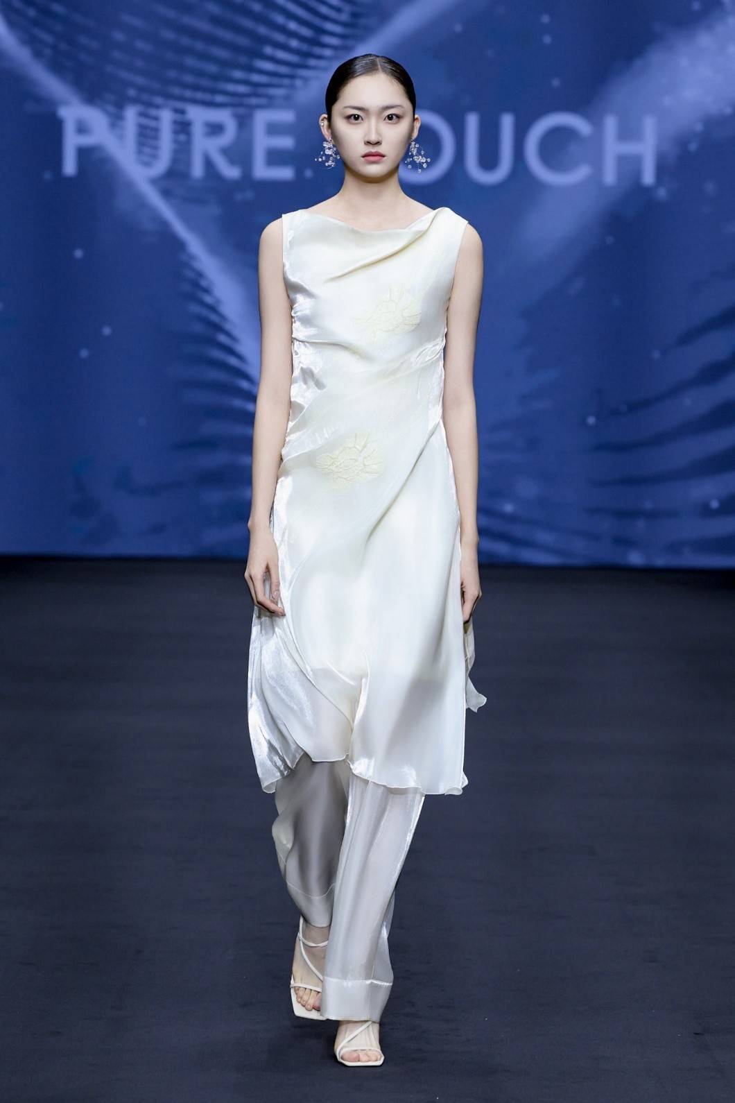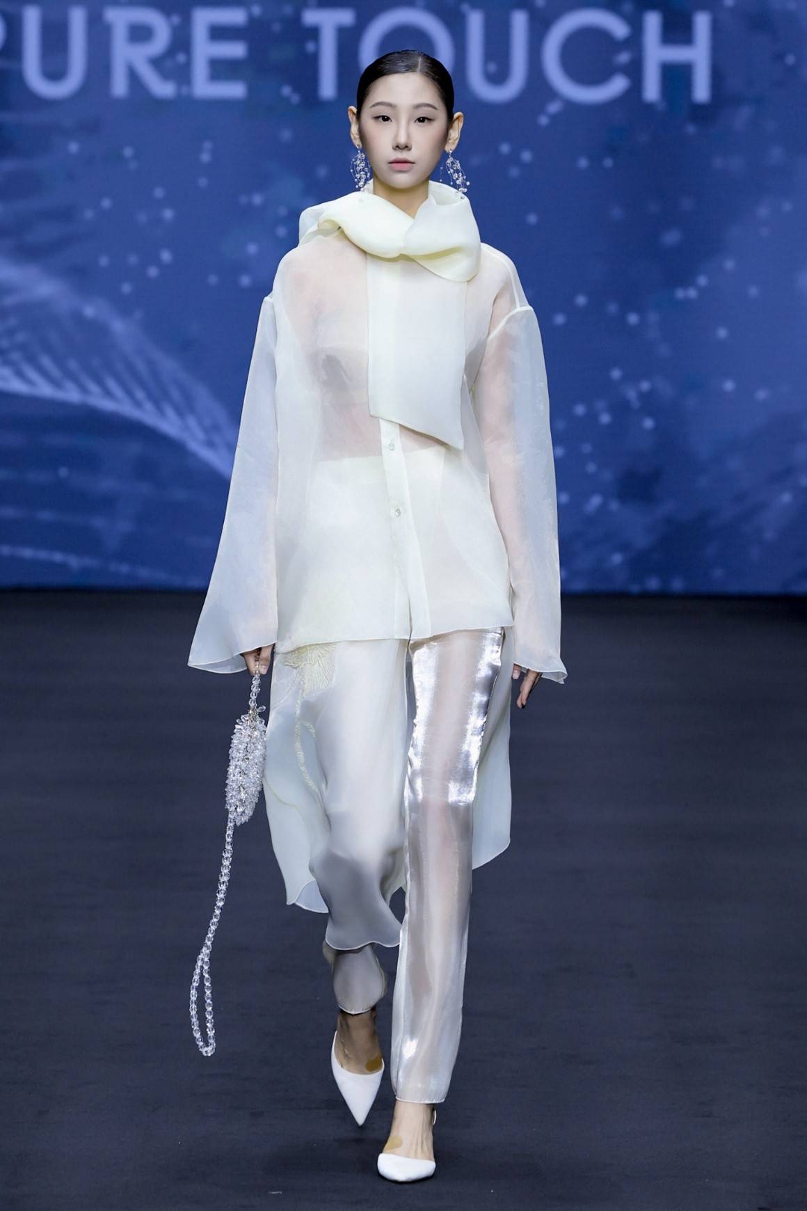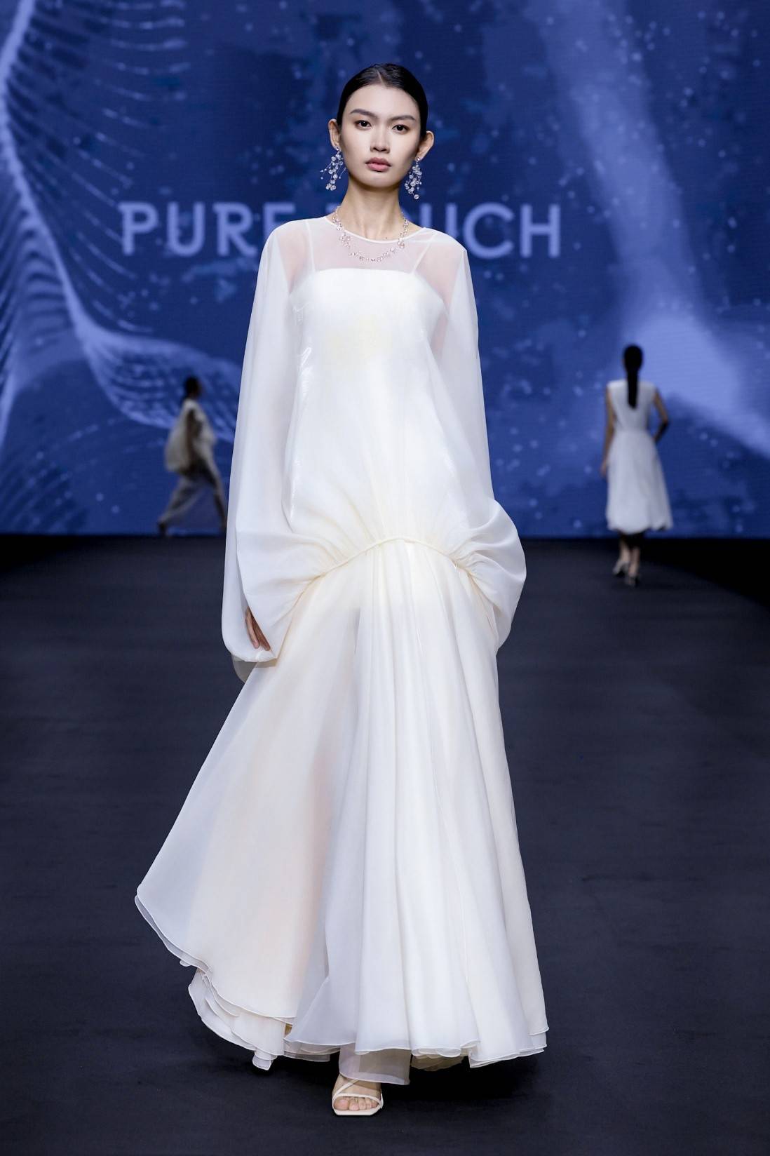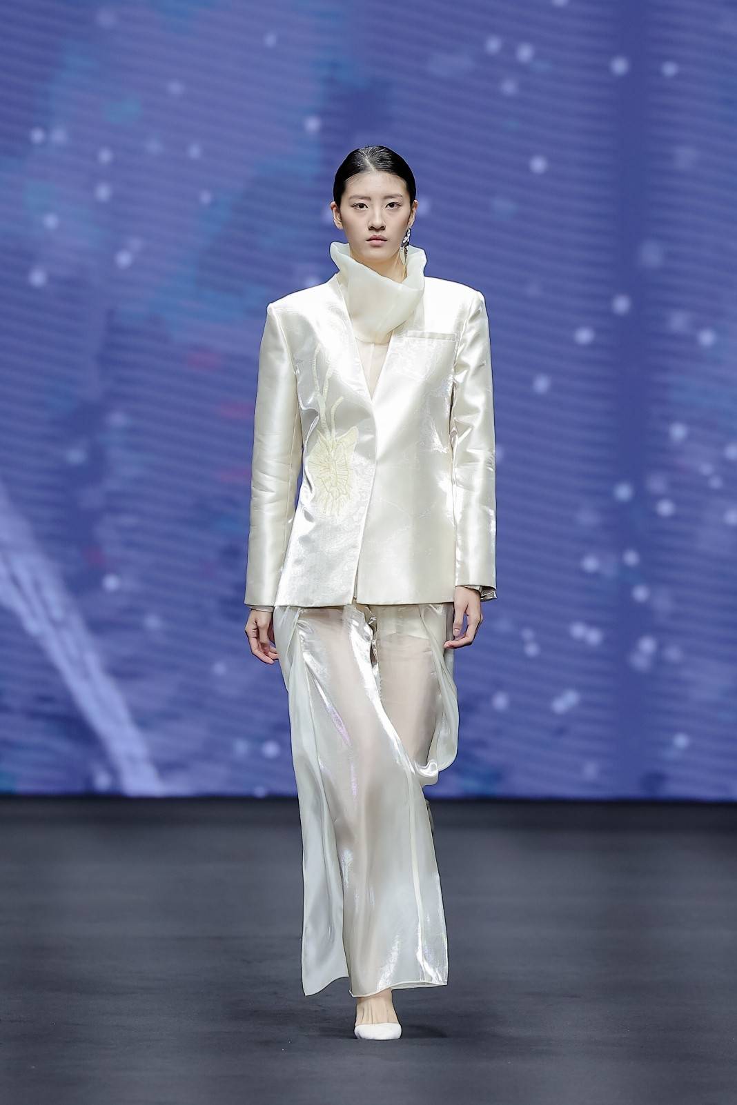 须臾藏芥子,纯粹白色调营造的极简时空,蕴含着无限可能。飘逸的真丝绡、欧根纱与柔和的棉、麻堆叠构建的线条巧妙延展,从“从不喊着要什么自由”的风到内有乾坤的直身型套装,饱含着追求自由、探索未知的当代精神。