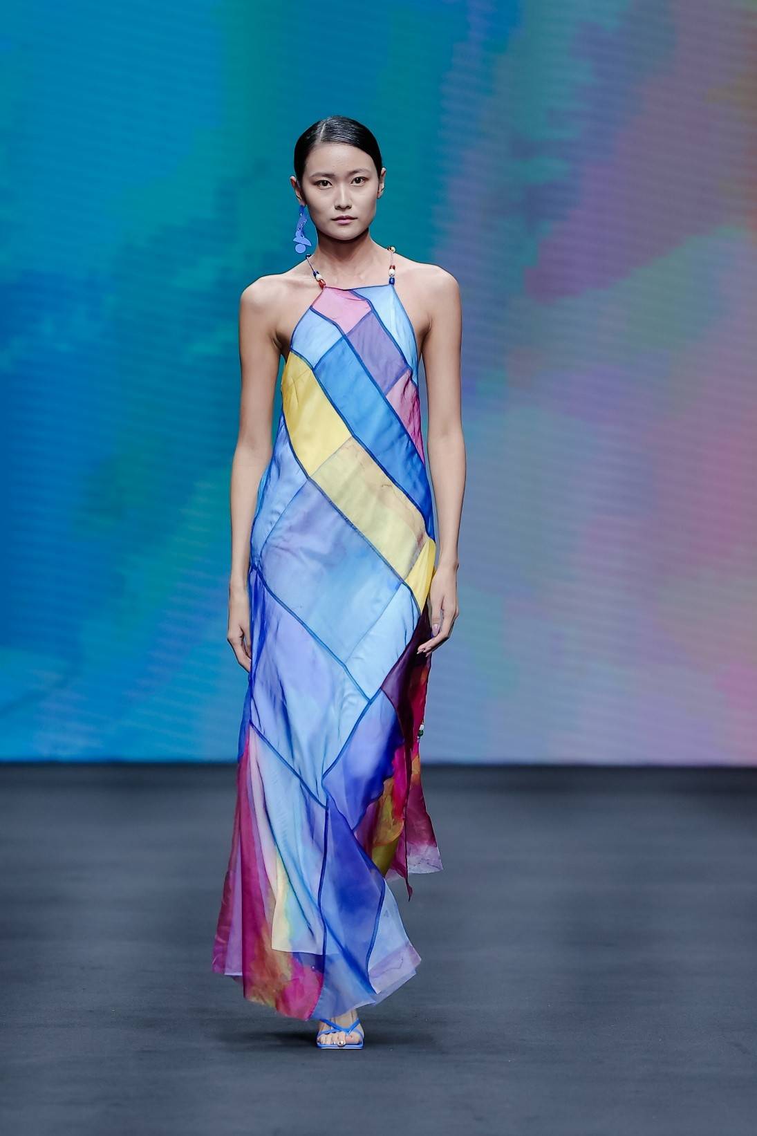 编织、流苏、镂空与闪片中暗藏生长的韵律。就这般万物相蕴于内,色彩张扬于外,将“无论顺境或逆境,我都好像一帆风顺”的洒脱与骄傲,传递给每一位观众。