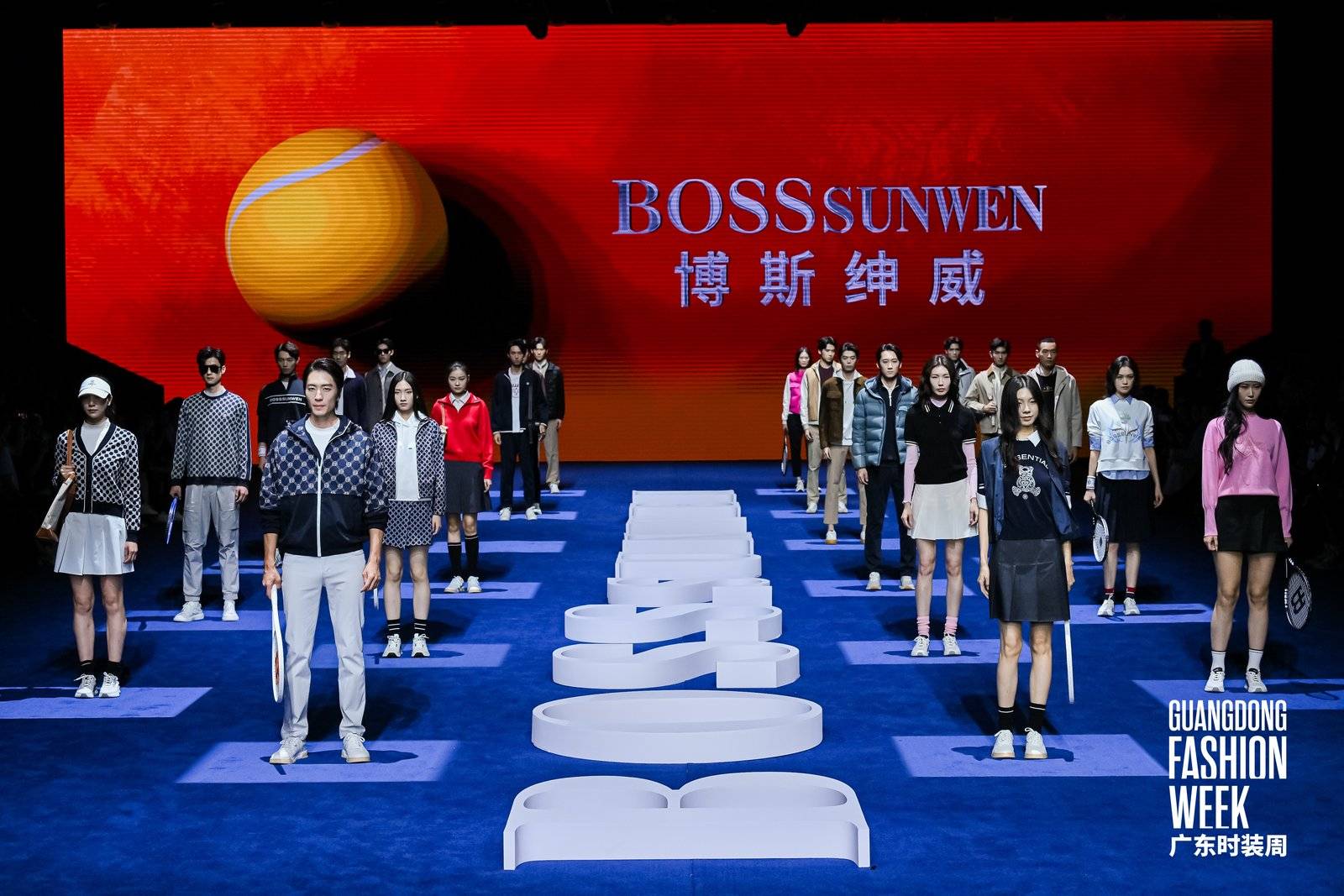 开幕首日,中国都市休闲男装标杆品牌BOSSSUNWEN博斯绅威率先以一场“城市流影”大秀拉开T台序幕,打破品类边界,首度发布全新网球系列服装。品牌从都市节奏与网球运动中汲取灵感,将流畅的运动线条与精致都市美学相融合,通过利落剪裁与高科技面料,将商务服饰的质感与运动服装的功能性结合,既完成品牌向运动场景的延伸,又精准契合十五运会热潮与户外运动趋势。