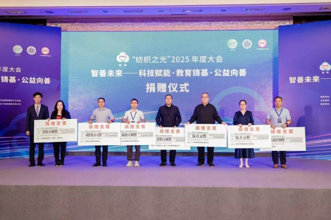 值得一提的是,会议期间举办了隆重的捐赠仪式。上海安诺其集团股份有限公司、常州旭荣针织印染有限公司、浙江凌迪数字科技有限公司、高梵(浙江)信息技术有限公司、比音勒芬服饰股份有限公司、鲁泰纺织股份有限公司、深圳影儿时尚集团有限公司等近20家企业及个人向纺织之光科技教育基金会捐赠总额340余万元善款及价值3300余万元的爱心物资,充分体现了纺织行业深厚的公益传统与社会担当。
