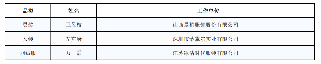 2025年第八届全国服装制版师职业技能大赛全国决赛考核项目包括“服装CAD制版”“立体裁剪”“样衣制作”“理论考试”四个部分,其中考核服装品类细分为男装、女装、羽绒服三类。经过多日的严格考核,最终获奖名单如下: