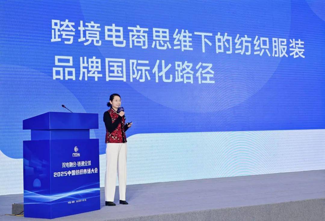 杭州一带一路跨境电商运营中心负责人、绍兴电商促进会秘书长傅海姣以《跨境电商思维下的纺织服装品牌国际化路径》为题进行了分享。她表示,跨境电商思维正驱动纺织服装品牌国际化,聚焦供应链优化与数字营销,构建全球化品牌竞争力。结合案例,她详细解析了产业集群如何通过资源整合路径,推动内外贸协同发展,实现市场全域覆盖的经验和创新模式。她建议要进行供应链整合、品牌统一、渠道协同,同时要基于跨境平台销售数据,建立品类增长指数,指导企业动态调整SKU结构与营销资源分配。