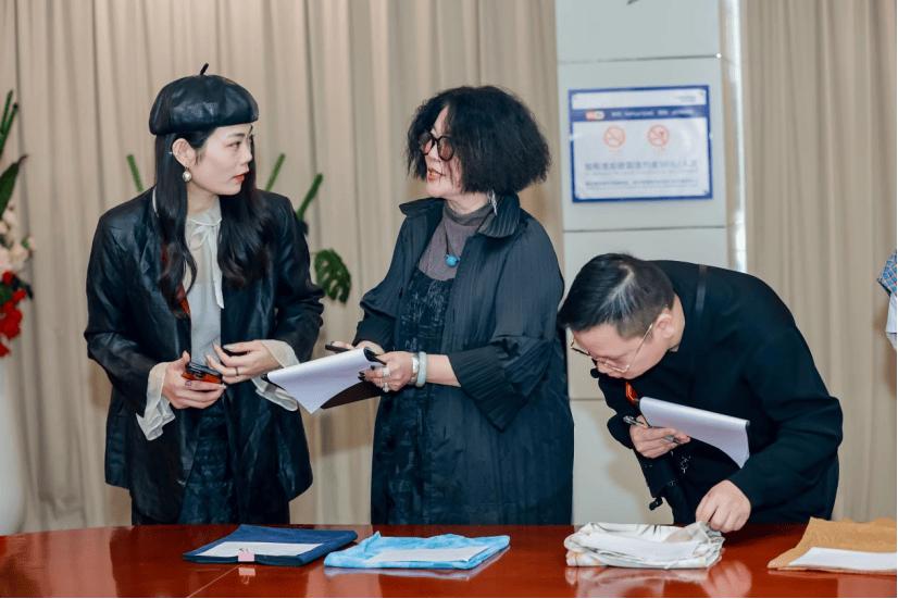 评审现场,中国纺织工业联合会流通分会会长徐建华,广州市海珠区科技工业商务和信息化局党组成员、总经济师谢军,广州市海珠区新港街道党工委书记郭明富,广州市海珠区凤阳街道办事处主任苏小健,广州市海珠区瑞宝街道办事处副主任吴汉裕,广州市海珠区中大国际创新生态谷纺织产业联合会会长侯闻欢共同为“新质领航先锋奖”专业评审团成员颁发了聘书。