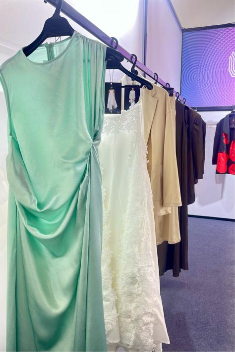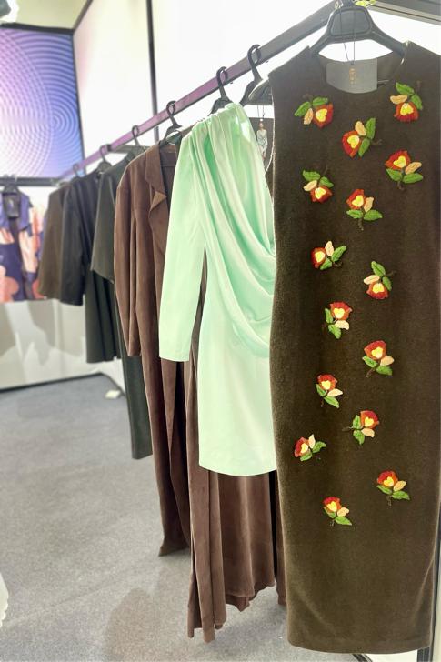 未耒品牌源自未来、根植本初,由武汉设计工程学院包蕾老师创立,秉持静观自得、自在之适、隐秀之美的生活哲学,专注兼具文化深度与现代审美的时装艺术。展会现场,品牌本季“她的春天”系列作品惊艳亮相,以扭结与花朵为核心设计语言,通过抽褶、编织等精湛工艺,在西装、连衣裙与阔腿裤上勾勒女性的柔韧与力量,流动的线条与雅致的色调,吸引了众多采购商与行业同仁驻足交流。