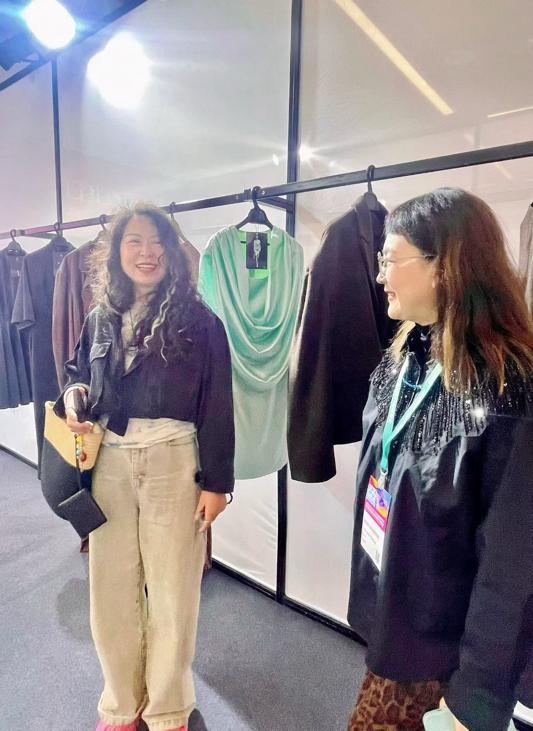 此次参展是学校产教融合的实质性突破。宋喜岷教授带领武汉设计工程学院学生罗敏馨深度参与展会全流程,从展品陈列、品牌推介到商贸洽谈,直面产业一线需求,将课堂所学与市场实践无缝衔接。借助展会链接的全球供应链资源与行业前沿视野,师生二人不仅与国内外品牌供应链、智能设备企业及设计机构达成深度对接,为未耒品牌拓展了合作渠道,更精准捕捉到行业科技、时尚、绿色的发展趋势,为学校服装专业的课程设置与教学改革提供了鲜活的产业样本,实现教学促产业、产业反哺教学的良性循环。