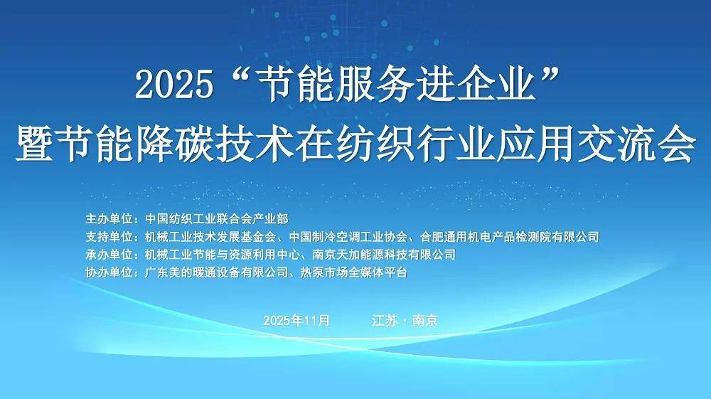 11月26日,“节能服务进企业”暨节能降碳技术在纺织行业应用交流会在江苏省南京市召开。会上,发布了《热泵在纺织行业的大规模推广应用机制和政策研究》的最新成果。本次会议旨在通过企业节能降碳典型案例与实践交流,探讨行业节能减排新路径,推广更多的节能降碳新技术、新模式,为“十五五”顺利开局注入新动能,引领行业可持续发展。