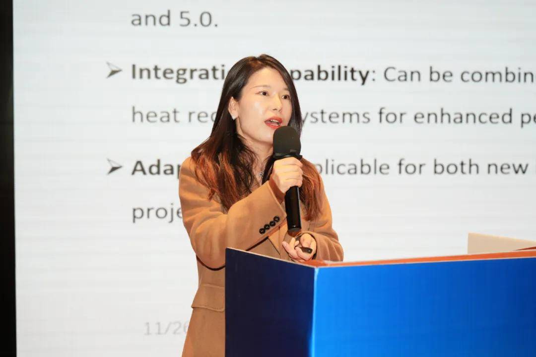 美的南京中心产品与方案支持部经理黄吴畏以《高温热泵助力工业节能降碳》为题,详细就美的楼宇科技“云到端”的全栈解决方案和服务进行了分享。他指出,在“双碳”目标的稳步推进下,清洁、稳定、高效的热能供应设备必将加快推广应用,将显著带动高温热泵在既有工业项目的节能改造市场取得稳健发展。目前,在国家及多地政策支持下,热泵替代进度不断提升。其中,纺织行业是优先发展的领域。结合美的高温热泵工业领域应用实践和产品,他介绍,美的系列热本产品可实现多场景匹配,显著提升企业的能源利用,节能减排成效显著。为推动热泵在纺织行业的应用,他建议要加强政策引导,加大与电力部门合作,加强工业热泵技术创新和管理创新,特别是要突出工业热泵在“双碳”目标达成过程中的作用。