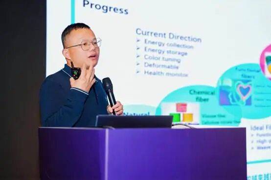 江南大学教授王潮霞在主题为“自适应环境响应智能纺织材料构筑及应用”的报告中,梳理了纺织材料从天然材料时代到智能材料时代的发展历程,重点介绍了光、温湿度、机械力、酸碱度四类响应型智能纺织材料的核心原理、制备工艺、性能特点及应用场景,同时提出了相关材料在耐牢度、结合性等方面存在的问题及解决方案,并展望了未来纺织材料在数字化、时尚化、环保化、个性化定制方面的发展趋势。