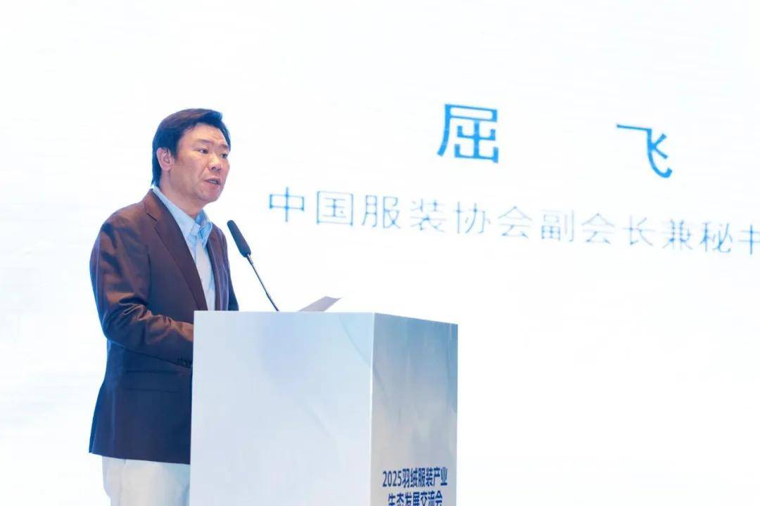 中国服装协会副会长兼秘书长、羽绒及皮革皮草专委会主任屈飞在致辞中充分肯定了平湖作为中国羽绒服装产业集群的优势,以及近年来在市委市政府支持下取得的显著成效。他强调,需紧抓科技革命机遇,从强化数智驱动、坚持绿色发展、突出文化赋能、筑牢协同根基四个方面推动高质量发展。他呼吁全行业携手把握机遇,共同推动羽绒服装产业向更智能、更绿色、更协同、更开放的方向迈进。