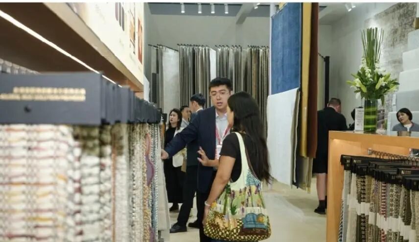 高端印度手工毯“芭蕾系列”是产品展示区的另一大焦点,橄榄绿主色款式契合当下自然色系偏好,象牙白基础款产品的现场咨询与下单量高。此外,国产高性价比系列、土耳其机织系列等,也凭借各具特色的设计与质感,受到不同客户群体的关注。