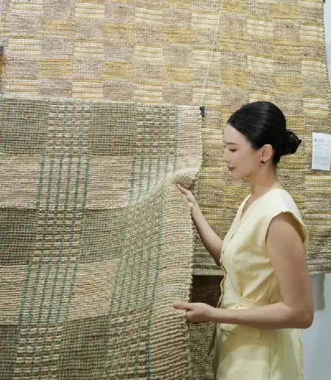 全维解决方案是优立地毯参展的底层逻辑,兼具颜值与实力的产品则是其核心竞争力的直观体现。展位核心区域,2026年春夏新品“夏木系列”与“彩琅系列”是现场打卡热点,两款以印度黄麻为主材的新品,诠释“回归自然”设计主题,在色彩表达上转向更具情绪价值的“色彩静奢”,用丰富雅致的色彩为家居空间赋予更多情感表达可能。