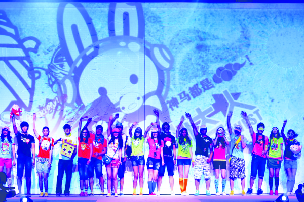 11位达人以诙谐的动漫形象为第20届“真维斯杯”大赛亲手设计的“达人恤”,首次集体亮相大赛开幕式。