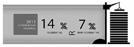 图片说明:2012年美国的住宅建筑增加了14%,非住宅建筑增加了7%。