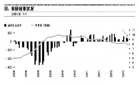 图片说明:2012年美国的平均失业率为8.1%,2011年美国的平均失业率为8.9%。