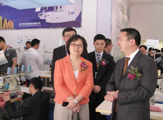 更为引人瞩目的是何烨副理事长在石狮市市委常委、人大主任等人员的陪同下来到美机展位,了解美机参展情况。公司董事长林雪平先生热情地向领导们介绍了美机公司自主研发的系列产品,诸如电脑直驱平缝机、平头锁眼机、电子套结机等,机电一体化、节能、环保、高效是美机品牌的最显著特征。