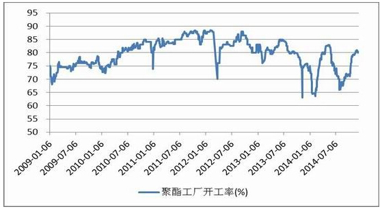 首先聚酯行业目前开工率维持在80%附近,处于2014年内开工率相对高位,同时因原材料价格走低,目前聚酯行业利润在11月份达到年内高点,以聚酯切片(半消光)为例,我们根据成本测算后,初步计算目前利润接近900元/吨,聚酯的利润水平已经达到3年高点。聚酯行业在利润的驱动下,开工率进一步走高的概率较大,进而促进对PTA的需求。截至11月7日当周,涤纶库存水平在7~17天,涤短库存水平为10天,从长周期看,该库存水平处于近三年来的低点。从季节性因素看,第一季度属于聚酯行业库存增长周期,多以短期内聚酯行业库存将继续增长。
