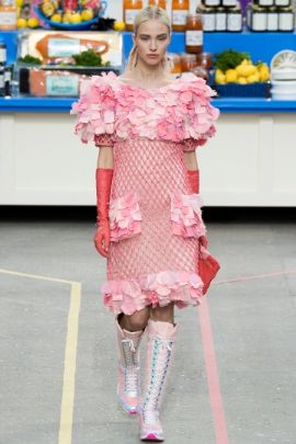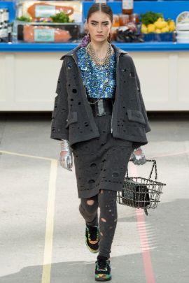 近几季,Chanel的设计备受争议,2014秋冬系列的发布再一次让人大跌眼镜。超模Cara Delevingne身上的破洞套装,破烂底边松身连衣裙,带有花朵的紧身连衣裙,怪诞的配色,实在让人难以接受。尽管老佛爷Kar Lagerfeld对此有自己的创意,但是看着满身是洞的设计出现在一个大超市里,不免让人联想起是被老鼠咬破了的高级时装。