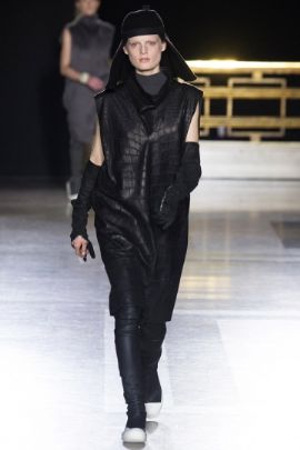 富于戏剧效果的展示方式曾是Rick Owens最显著的风格之一,但从上一季男装,则产生了很明显的变化。2014秋冬虽有茧形的斗篷、绗缝、柔软的面料、短斗篷上衣等舒适并适合当下的款式,但整场时装发布部落及个人信仰味道浓厚。这种风格颇具未来主义,但那些愿意将自己打造成部落女战士的人应该为数不多。