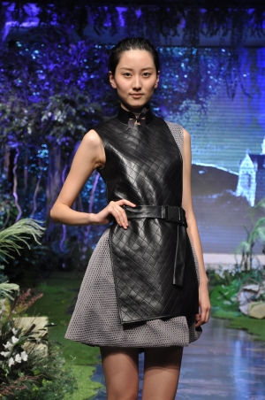 7月2日下午2点半,浙江弗奥时装股份有限公司在海宁皮都锦江大酒店锦绣厅为2014中国皮革时尚周奉献了精彩的闭幕大戏——梦游秘密森林。整整45分钟的时装秀,展示了百余款新装,随着舞台背景从雷声隆隆到艳阳高照,款款走来的模特身上的衣服也从纯白色系变成五彩斑斓,甚至还有全部用鲜花制成的长裙,美艳动人。