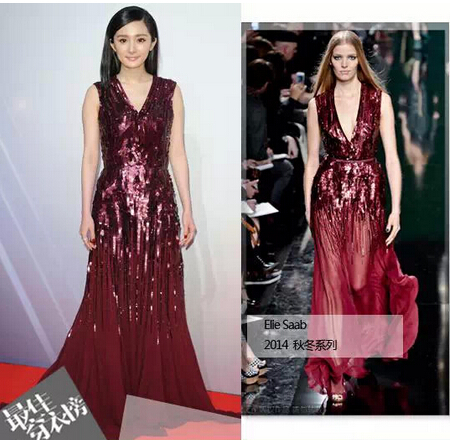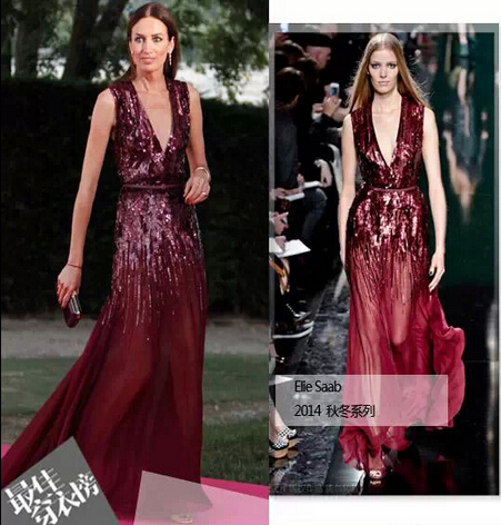 无独有偶,维斯-艾薇瑞姿出席活动也看上了这件出自Elie Saab 2014秋冬系列的猪肝红长礼服裙。维斯骨架较大,穿起来和杨幂有着不同的味道,更多的是潇洒不羁的自如范儿。搭配同色猪肝红手包,也很好看。