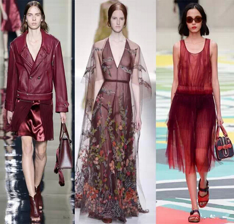 既然姨妈红被认定为2015年的流行主色,那自然是逃不脱众大牌设计师的法眼。在2015早春系列的秀场上,Christopher Kane和Valentino等都推出了以猪肝色为主色调的成衣,款式样样齐全,皮衣外套或者是礼服长裙样样皆有。