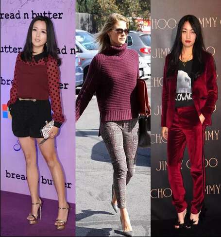 在2015早春系列的秀场上,Christopher Kane和Valentino等都推出了以猪肝色为主色调的成衣,款式样样齐全,皮衣外套或者是礼服长裙样样皆有。当然也不仅仅是在秀场上,杨幂也大胆带头将猪肝红穿上身。不料与维斯-爱薇瑞姿撞衫,PK的火花瞬间点燃。