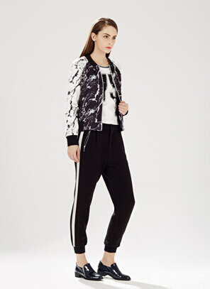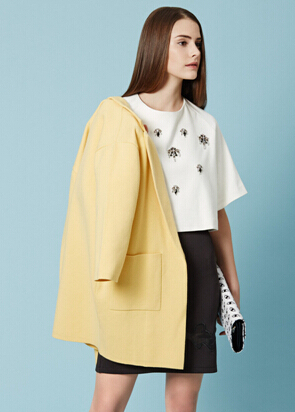 黑白两色作为基本色,大胆运用诸如亮黄、正红、云粉等颜色进行搭配。