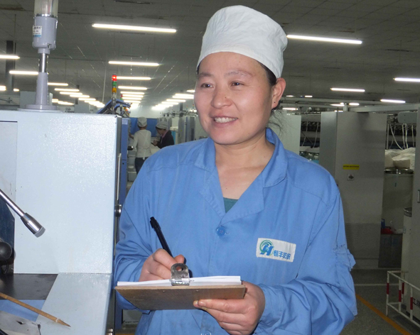 李丽是德州恒丰集团平原恒丰纺织科技有限公司的一名员工,自进入恒丰大家庭以来,勤奋好学,苦练操作技术。李丽在岗位上任劳任怨,始终保持全勤的记录,是公司的劳动模范。李丽每天从忙碌的工作中体会到了“快乐工作、幸福生活”的滋味,同时,她把这份幸福和快乐传递给了她的家人。李丽大家庭中6位家庭成员都先后加入恒丰,在恒丰努力工作。