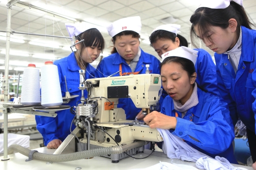 朱卫俊常把多年积累的缝纫技术与新同事分享。