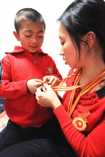 朱卫俊在工作岗位上的执着和进取精神,也深深影响着儿子韩善成。韩善成在生活中以妈妈为榜样,勤奋认真,在学校多次获得“学习标兵”称号。他说:“我要与妈妈试比高。”梁孝鹏 范宝琛 摄影报道