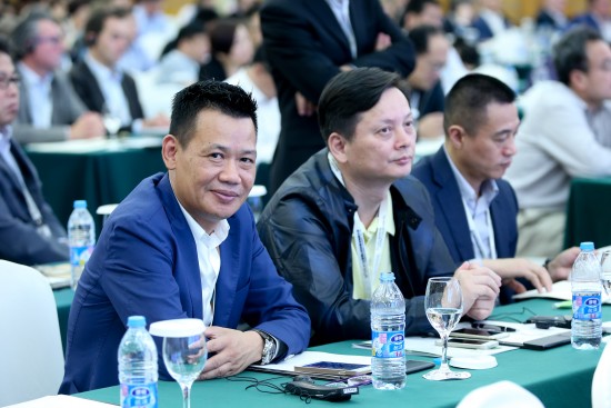 会上,我国企业家认真听取会议内容。