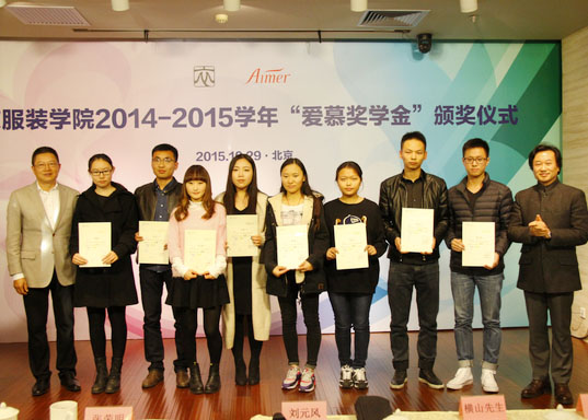 北服学院倪赛力副书记宣读了2014-2015学年爱慕奖学金获奖学生名单。爱慕集团总裁张荣明先生及刘元风校长为获奖学生代表颁发证书。艺术设计学院李清同学作为获奖学生代表发言,表达了对爱慕集团的感激之情,并表示将以此为激励,志存高远、立志成才,将来更好地回馈企业、学校和社会。