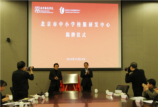 12月24日上午,“北京市中小学校服研发中心”揭牌仪式在北京服装学院举行。市教委委员王定东,北京服装学院党委书记马胜杰、院长刘元风等出席了揭牌仪式。马胜杰在揭牌仪式上致辞;王定东、刘元风为研发中心揭牌;王定东、马胜杰向指导委员会专家颁发了聘书;部分区教委、中小学和专家代表做了交流发言;最后,王定东作总结讲话。各区教委主管领导和部门负责人、部分中小学校长代表、专家委员会组成人员、北京服装学院相关部门负责同志、部分媒体记者参加了揭牌活动。