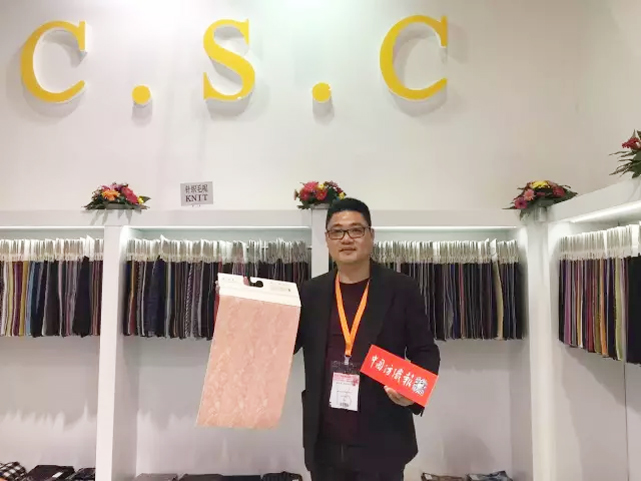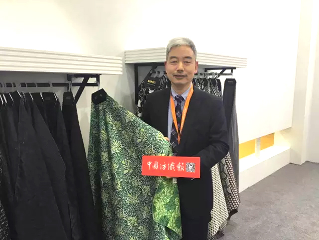 浙江巴瑞设计技术总监屠永坚手持今年主推面料。
