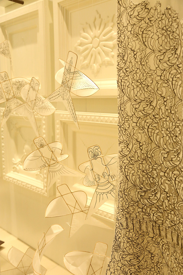 派对现场粉蓝衣橱艺术团与BBLLUUEE诗艺女人跨界演绎的BBLLUUEE系列2016秋冬新品成为现场最大亮点。生活艺术展将艺术与时装中完美融合,结合竹简、风筝、剪纸、花艺等元素的呈现,让现场观众在视觉、听觉、触觉和人文感知、时尚互动的体验中,感受艺术与时尚的融合魅力。