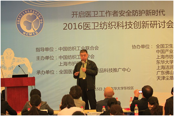 由中国纺织工程学会、上海市护理学会联合主办的“2016医卫纺织科技创新研讨会”于4月15日在上海东华大学延安西路校区隆重举行。本次会议由全国医疗卫生用纺织品科技推广中心承办,全国卫生产业企业管理协会、中国产业用纺织品行业协会、东华大学纺织学院、上海市纺织工程学共同协办,上海洁润丝新材料股份有限公司、佛山金万达新材料科技有限公司、天津尘盾科技发展有限公司给予特别支持。中国纺织工程学会副理事长龚进礼、中国产业用纺织品行业协会名誉会长朱民儒、上海市护理学会理事长翁素贞等相关领导莅临,上海80多家医院的医疗工作者120余人参加了本次会议。全国医疗卫生用纺织品科技推广中心常务副主任徐宏主持会议。