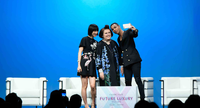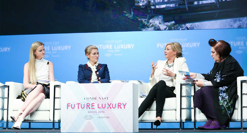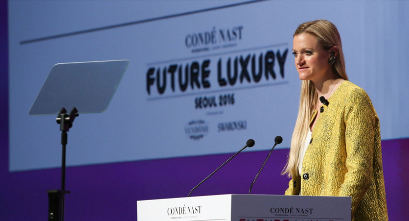 在这场由康泰纳仕国际举办的行业峰会上,她以会议主持者的身份与公司主席Jonathan Newhouse一道邀请了Versace首席执行官Gian Giacomo Ferraris、Giorgio Armani全球传讯总监Claudio Calò、Chanel面料研究Instagram时尚合作负责人陈怡桦(Eva Chen)、中国版《Vogue》主编张宇(Angelica Cheung)、三星集团C&T公司首席执行官兼总裁李叙显(Lee Seo-Hyun)、施华洛世奇执行董事会成员兼企业传讯及设计服务负责人Nadja Swarovski、设计师Anya Hindmarch、Jason Wu、Olivier Rousteing、Nicola Formichetti、Stephen Jones、Stephen Webster、Stuart Vevers等一众时尚界领袖共同参与,在为期两日的议程中共同探讨“奢侈品的未来”(Future Luxury)。