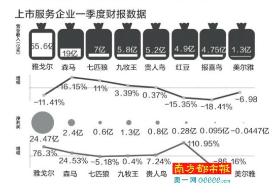 除贵人鸟外,南都记者昨日还比较了雅戈尔、森马、七匹狼、九牧王(16.770, -0.03,-0.18%)、红豆、报喜鸟(5.35, -0.04, -0.74%)、美尔雅(20.940, 0.15, 0.72%)共8家服装类上市公司。其中,仅贵人鸟、森马及九牧王三家企业,实现营业收入和利润的双增长,而九牧王的净利虽然有增长,但增幅仅在0 .4%左右。