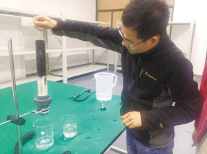 彭福兵向记者展示了这套被联合国认可的水处理膜过滤装置。过滤试管、“面条”样的过滤膜、集水杯和支架,就是一套简单的过滤装备。将“挂面”组装进管子里,就成了“净化过滤超能管”,可用于污水处理。