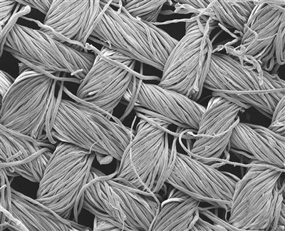 放大200倍的纳米结构所覆盖的棉纺织物