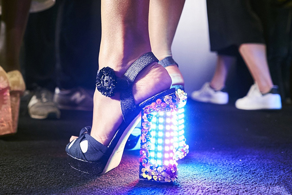 最近在 CHANEL、DOLCE & GABBANA 这样传统奢侈品大牌的秀场上发光单品也是频繁亮相。CHANEL 2016 春夏系列的发光凉鞋在某宝上也已经成为爆款,而 2017 春夏机房秀场上还展示了全新的发光手袋。虽然设计风格和先锋向来不挂钩,但 DOLCE & GABBANA 对于新事物总是怀抱开放的态度,当年让模特在秀场上玩自拍的桥段至今依旧是大家所津津乐道的话题。这一季从皇冠、手袋到高跟鞋,DOLCE & GABBANA 带来了相当数量的发光单品。