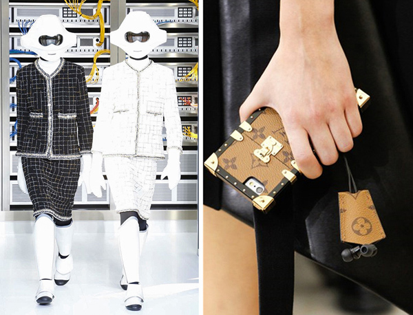 2017 春夏时装周 CHANEL 在机房办秀让模特扮机器人走秀,Louis Vuitton 则推出了刷爆朋友圈的手机壳