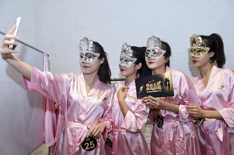12月16日,SIUF2017国际内衣超模全球海选北京站在高碑店文创园举行,参赛模特戴着精致的面具,身穿芬狄诗品牌性感内衣和泳装,以优雅身姿展示内衣时尚。戴面具走秀是本次大赛的一大亮点,金色或黑色的面具不仅凸显了模特的神秘和高贵,在面具衬托下的完美身材更是诱惑极致。