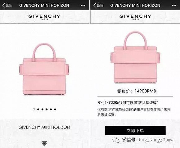 纪梵希“Mini Horizon”手袋的微信订购页面